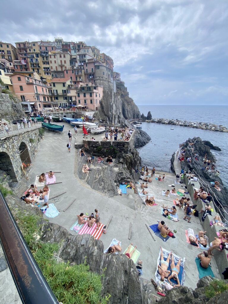 Profitant de l’accalmie de la houle (on verra plus tard que c’est assez rare…), nous avons dormi sur une bouée devant le village de Manarola.